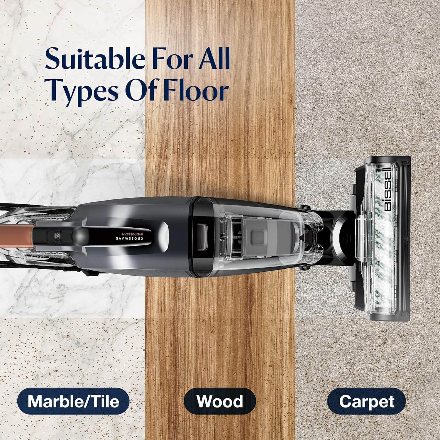 - 🔴 Multi-Surface Cleaning: From the regular floors, tiled floors, wood floors, laminated floor, and other type of floors, rubber floor mats, the BISSELL Crosswave HydroSteam is designed to clean it all. It’s safe and effective on a variety of floor types including carpets, leaving your home spotless with just a click of a button. Whether it’s dirt on your hard floors or on your carpets – this vacuum does it all.