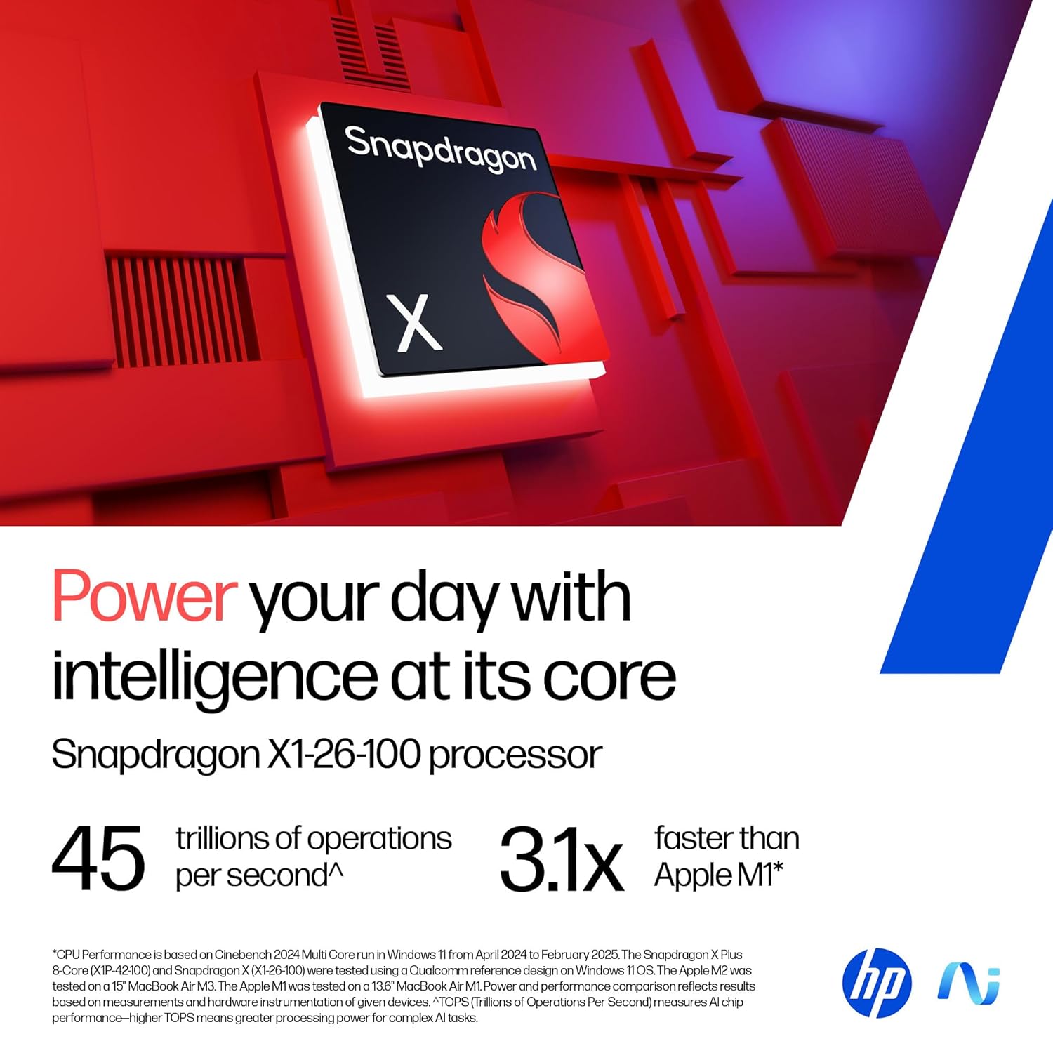 - Processor, Memory & Storage: QC Snapdragon X1-26-100 (up to 3GHz max boost clock, 30 MB L3 cache, 8 cores, 8 threads)| Memory: 16 GB LPDDR5x -8448 MT/s (onboard)| Storage: 1 TB PCIe Gen4 NVMe M.2 SSD