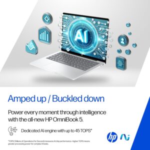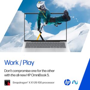 HP OmniBook 5 OLED (Previously Pavilion), Snapdragon X Processor (16GB LPDDR5x, 1TB SSD) 2K, 14”/35.6cm, Win11, M365 Basic(1yr)* Office24, Silver, 1.35kg, he0015QU, Light-Weight, Next-Gen AI Laptop