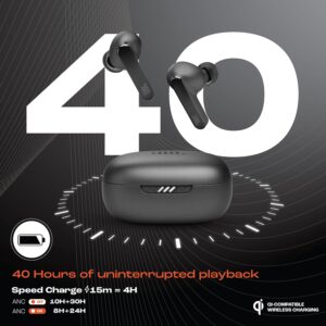 UPTO 40 HOURS OF PLAYTIME: Keep the music going and never miss a beat with up to 40 hours Playtime (10 hours in buds and 30 hours within case) powered by Qi-compatible charing. When dry on power, a quick 15 minutes of charging provides you another 4 Hours of playtime, while you can completely charge from Zero to 100 within 2 Hours.