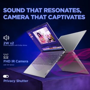 - Camera: FHD 1080p + IR with Privacy Shutter |Smart Login with Facial Recognition |Fixed Focus | Audio: Front Facing 2x 2W HD Stereo Speakers | Dolby Audio