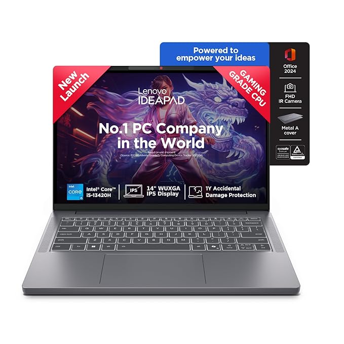 Lenovo IdeaPad Slim 3 13th Gen Intel Core i5-13420H 14 inch (36.8cm) WUXGA IPS Laptop (16GB RAM/512GB SSD/Windows 11/Office Home 2024/Backlit Keyboard/1Yr ADP Free/Grey/1.4Kg), 83K00034IN