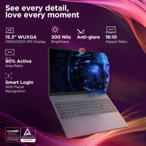 - Display: 15.3″ FHD (1920×1200) | 300Nits Brightness | Anti Glare |TUV Low Blue Light Certified
