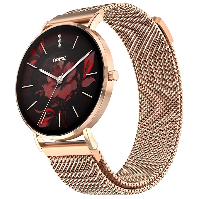 Noise Diva 2 Fashion Smart Watch for Women – Sleekest Dial, 36mm AMOLED Display, Snug Fit, Improved Female Cycle Tracker, BT Calling, Sleep Tracking, AI Voice Assistant, Password Protection-Rose Link