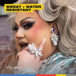 - SWEAT AND WATER RESISTANT. Rated IPX4 with sweat and water resistance, these buds are made to withstand any adventure while blocking out unwanted ambient noise.