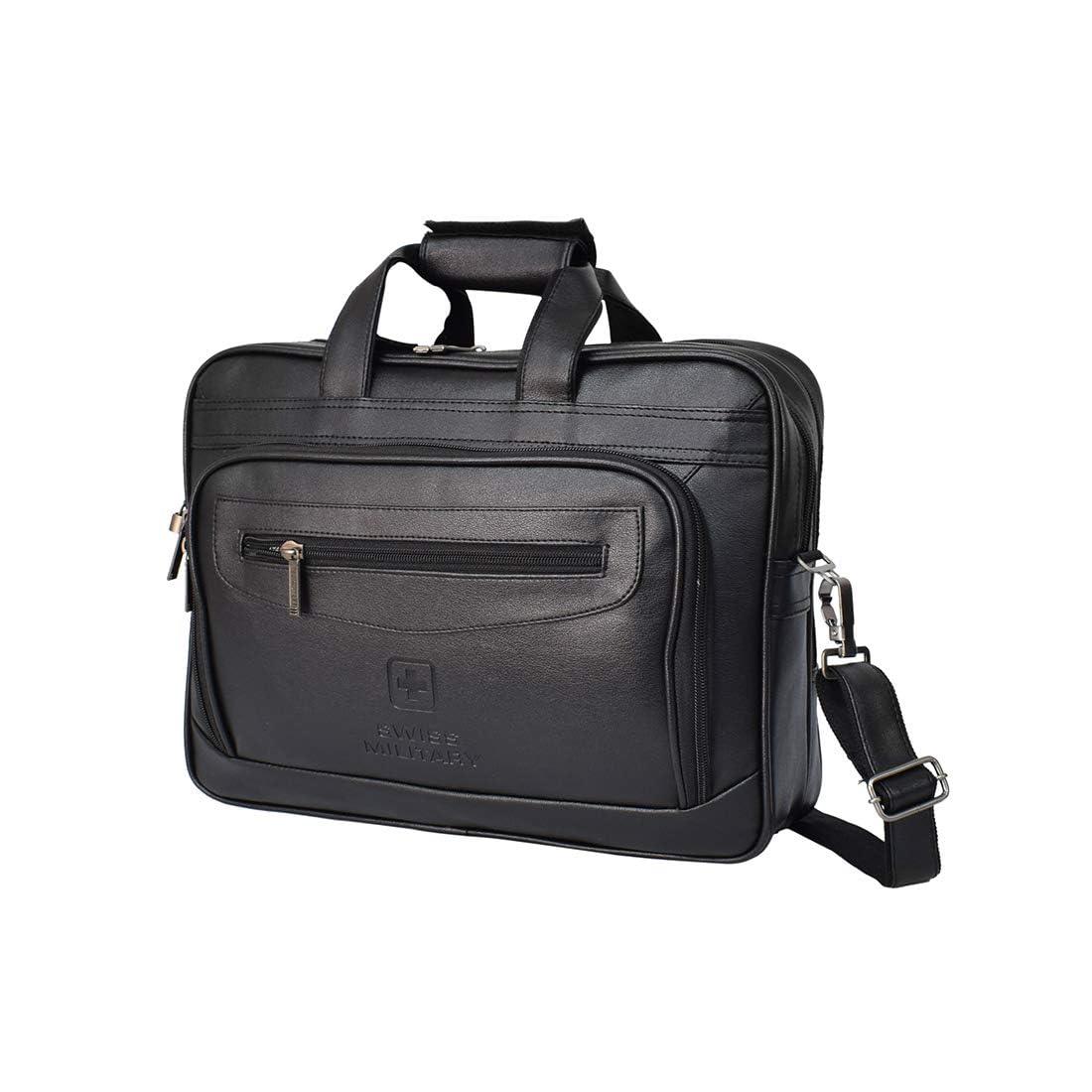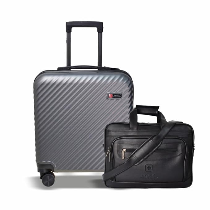 Swiss Military Combo of (LTB9_PLB1) 39L Laptop Overnighter Trolley & Leatherette Laptop Messenger Bag, Hard-Sided ABS Cabin Size Luggage with 360° Wheels, 15.4” Laptop Compartment, Adjustable Strap